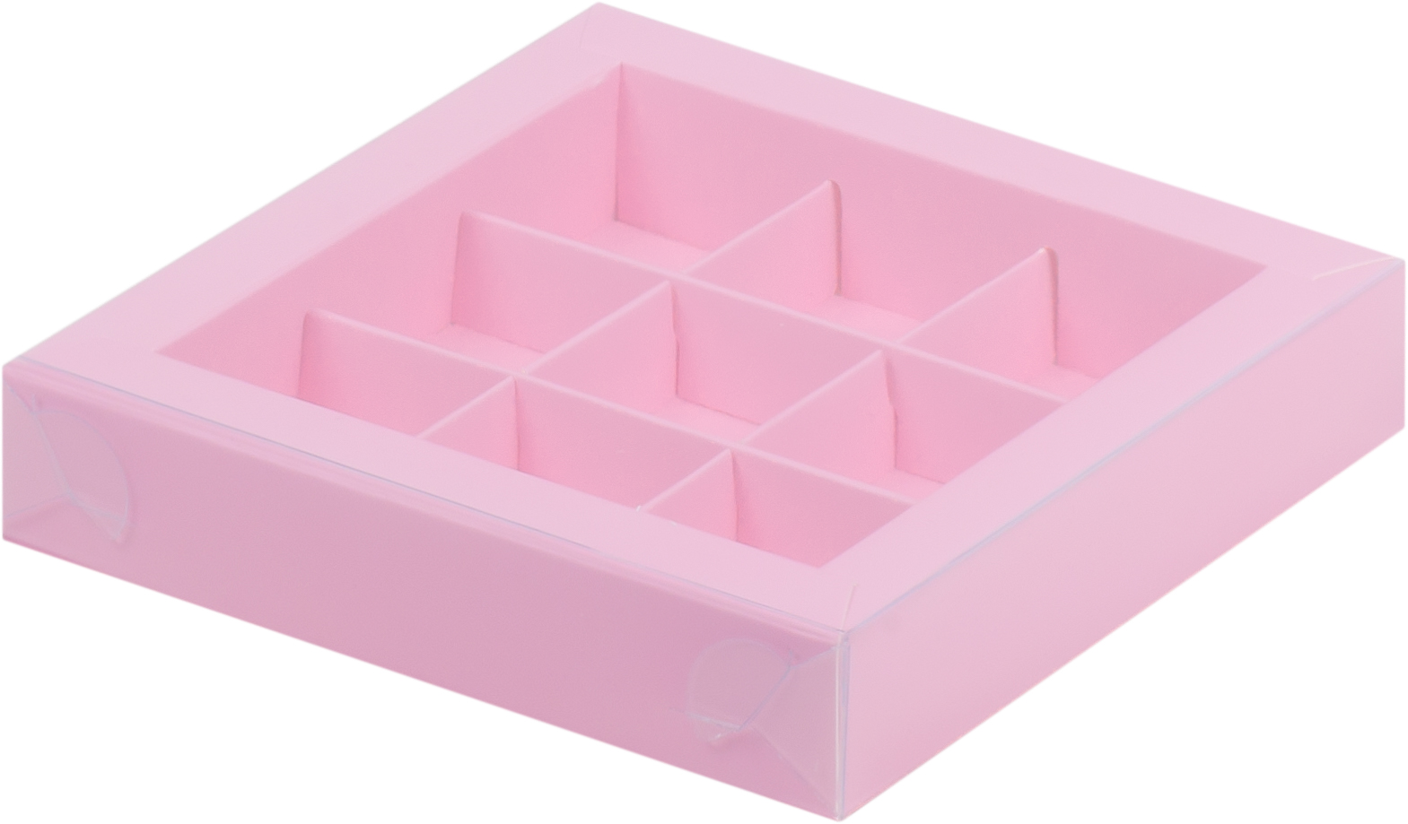 Коробка для конфет розовая матовая с пластик крышкой 15,5 *15,5 *3 см (9)