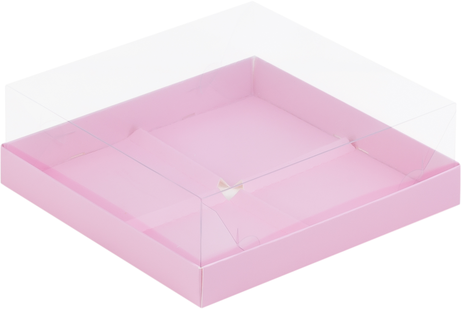 Коробка муссовые пирожные (кукис, cookies) (4), розовая матовая, 19*19*8 см с пластиковой крышкой