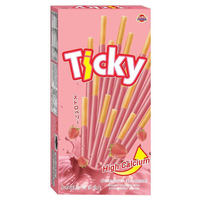 Соломка Ticky покрытая клубничным кремом, 40 г
