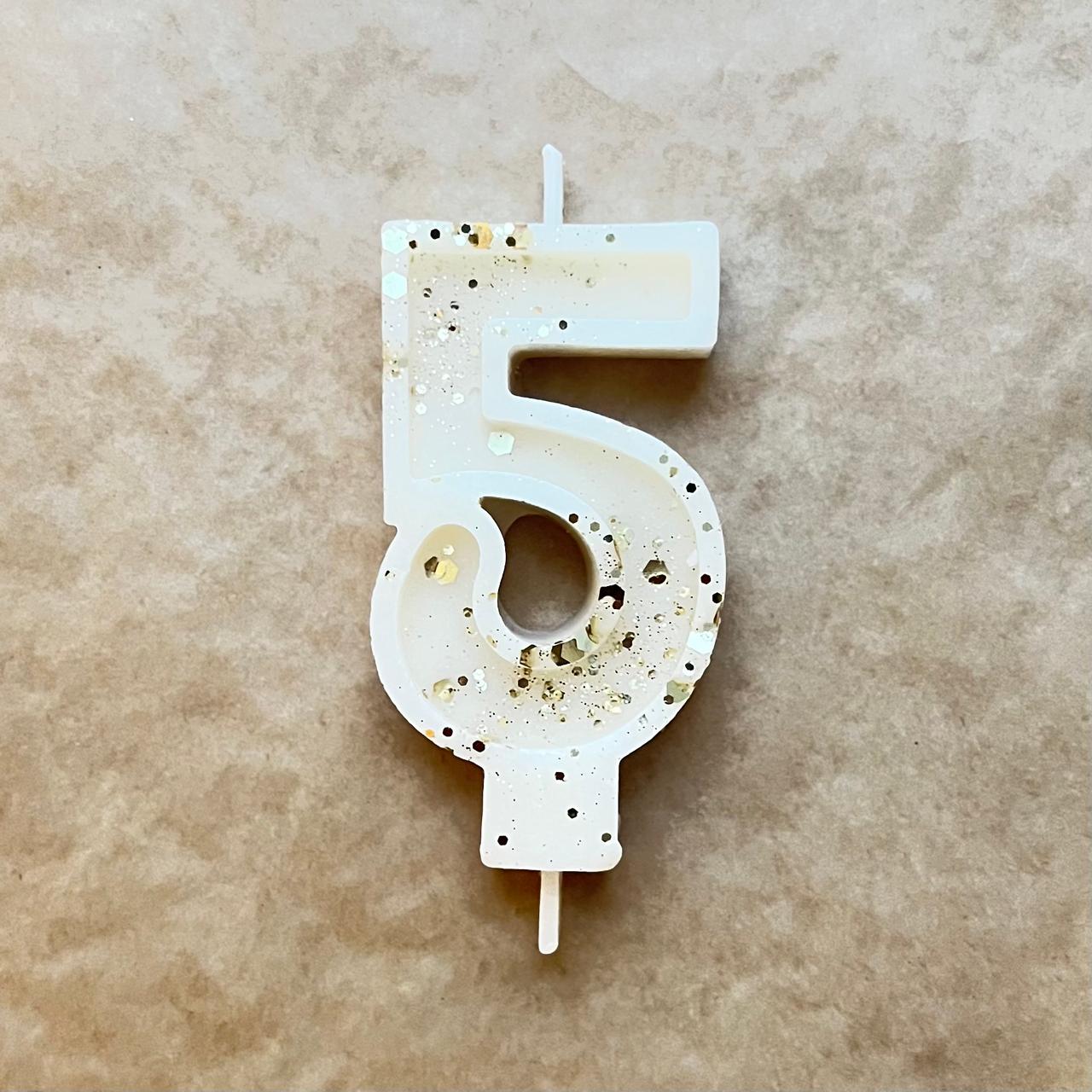 Свеча для торта "Гламур", "Цифра 5" жемчуг с золотом