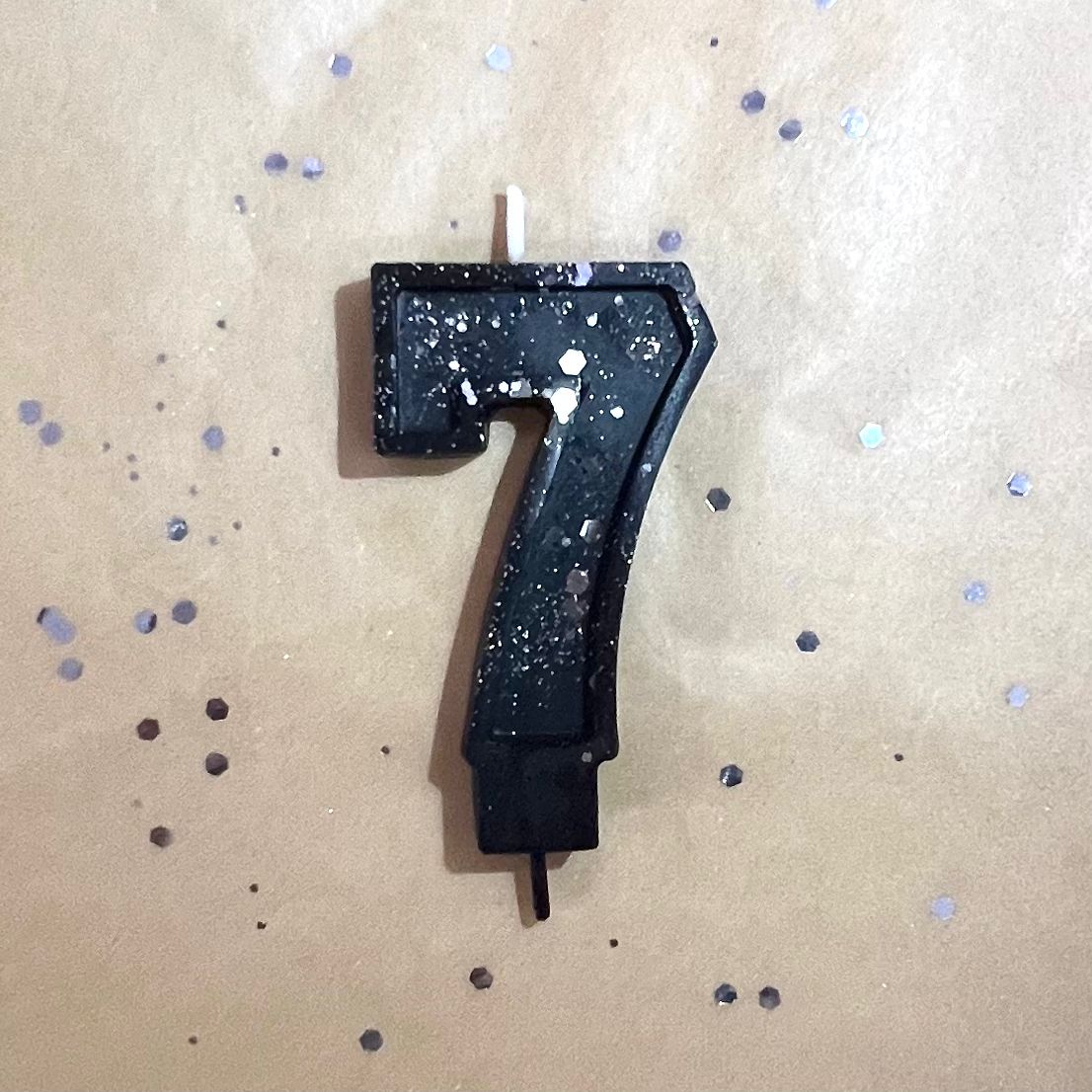Свеча для торта восковая "Гламур", "Цифра 7" черная с серебром
