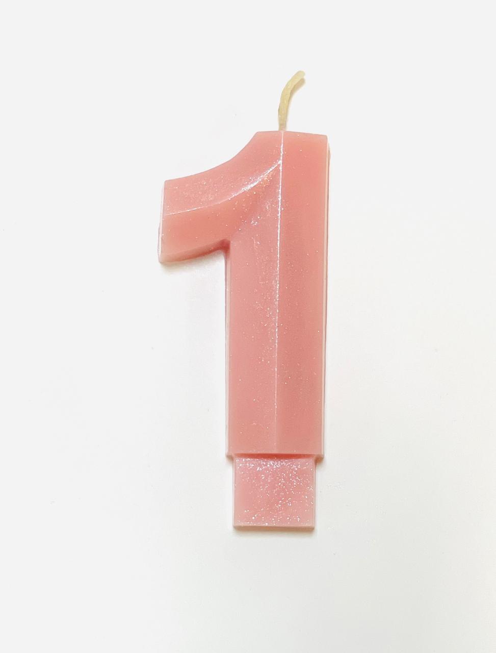 Свеча для торта восковая "Грани", "Цифра 1", розовый перламутр