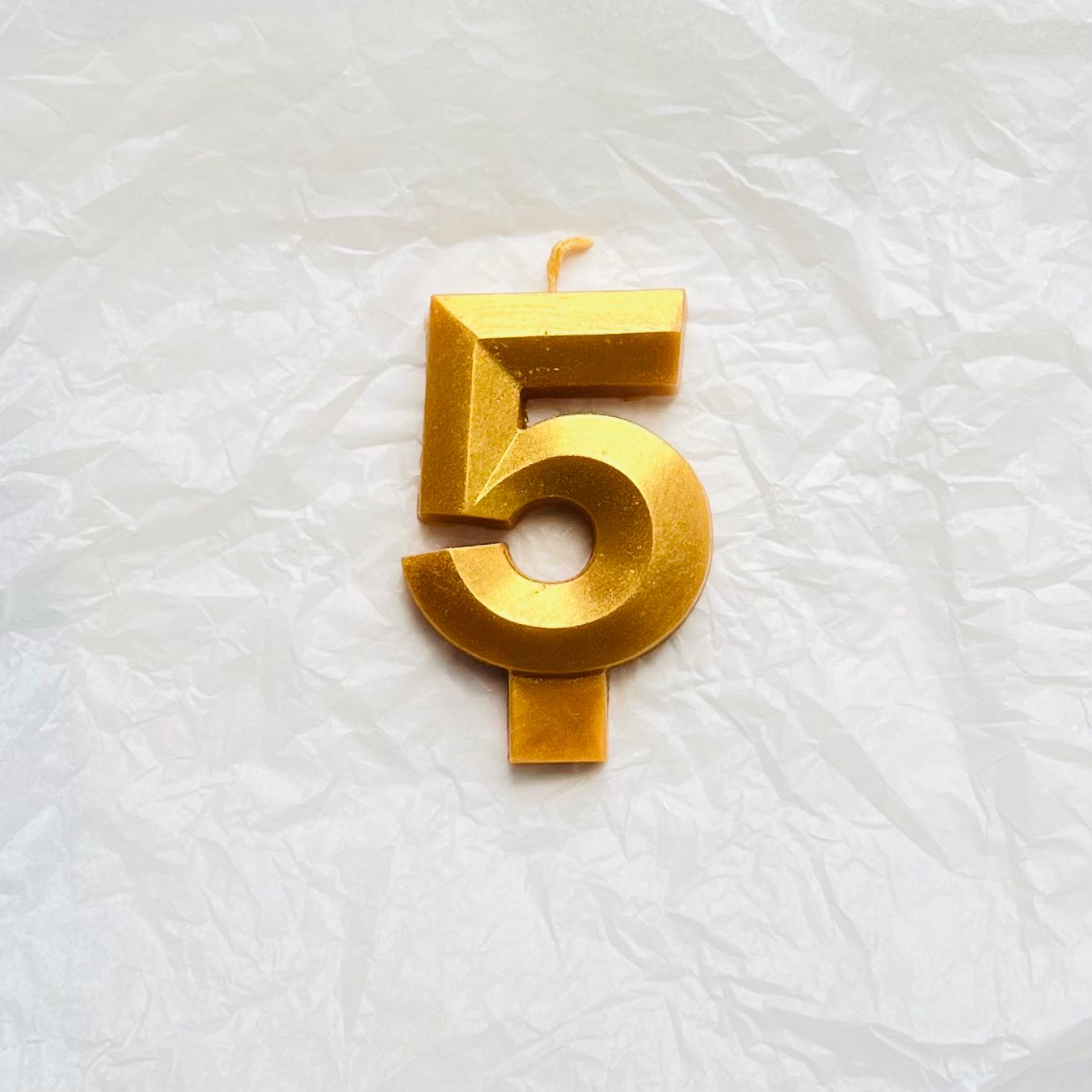 Свеча для торта восковая "Грани", "Цифра 5", золото