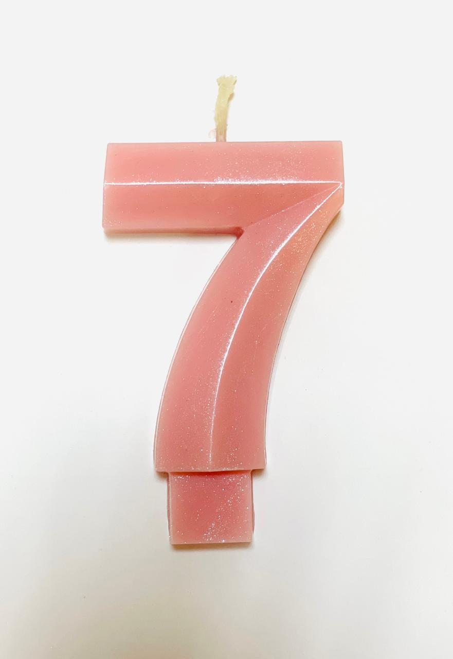 Свеча для торта восковая "Грани", "Цифра 7", розовый перламутр