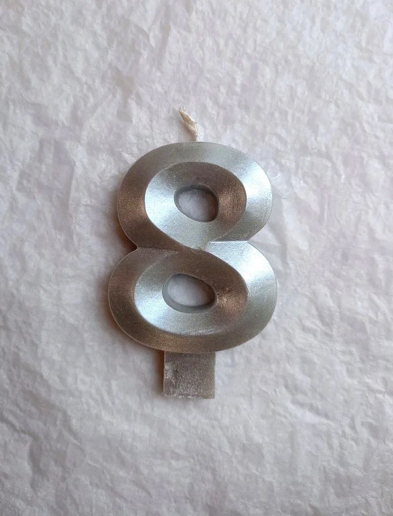 Свеча для торта восковая "Грани", "Цифра 8", серебро