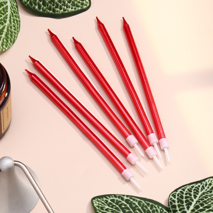 Свечи в торт "Ройс", 6 шт, высокие, 12,5 см, красный металлик
