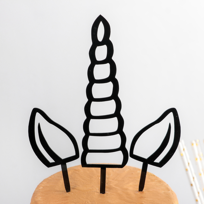 Топпер на торт "Единорог" 16,5х10,5 см, цвет черный