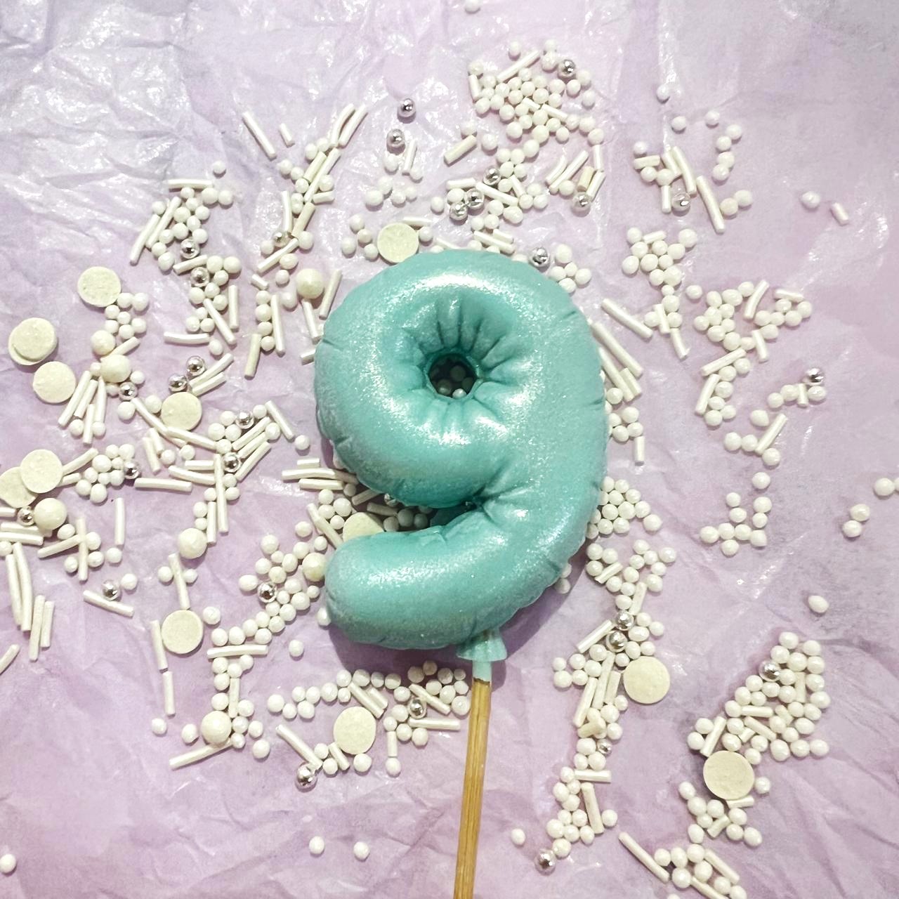 Фигурка из шоколадной глазури "Цифра-Шарик 9" голубая