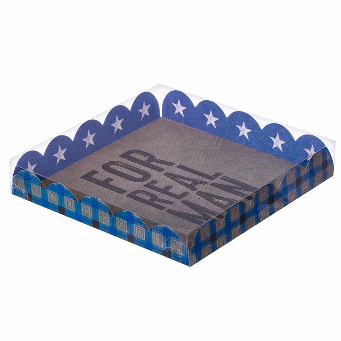 Коробка для кондитерских изделий с PVC-крышкой For real man, 18 × 18 × 3 см