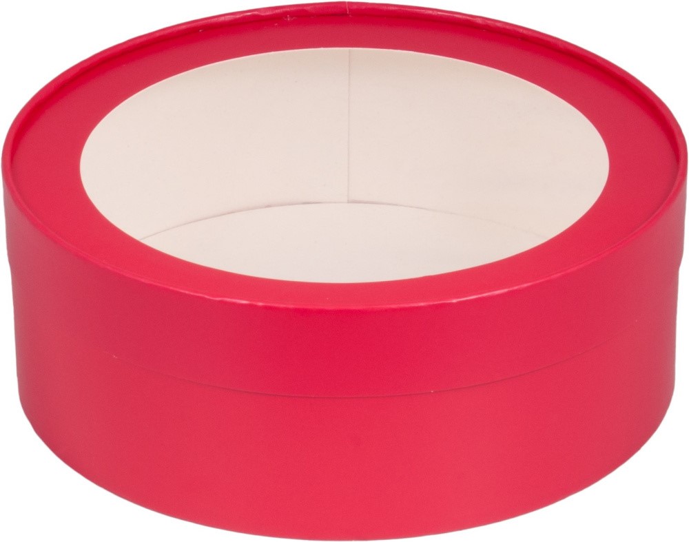 Коробка для зефира круглая с окном 20см высота 7 (красная)