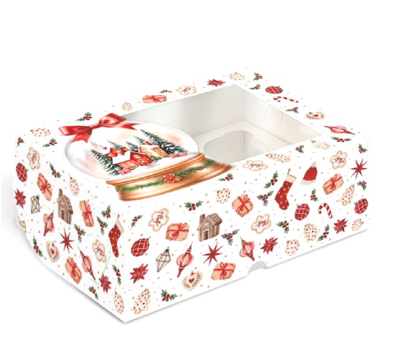 Коробка на 6 капкейков «Новогодний подарок», 25×17×10 см