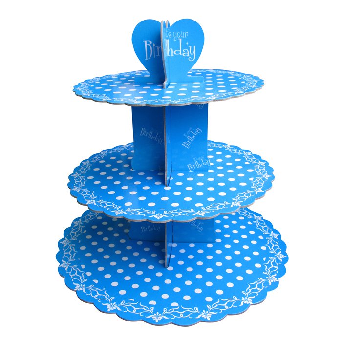 Подставка для пирожных трехъярусная "Горошек" цвет голубой