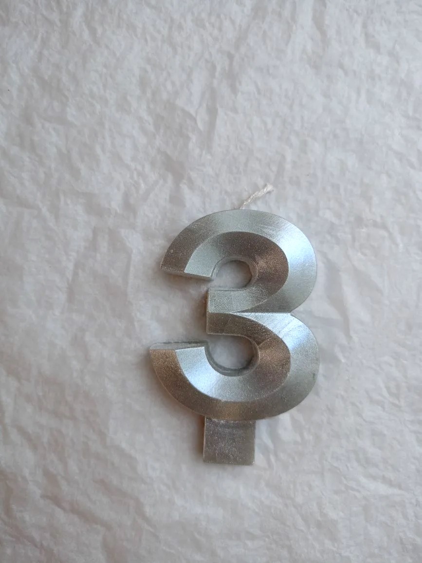 Свеча для торта восковая "Грани", "Цифра 3", серебро